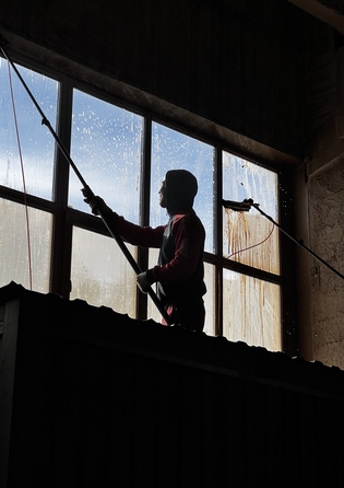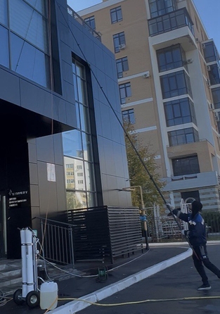 Высотная мойка производится с использованием специального оборудования, а также с участием моющих средств щелочной и кислотной реакции. Они не выделяют соединений и паров, опасных для здоровья человека.